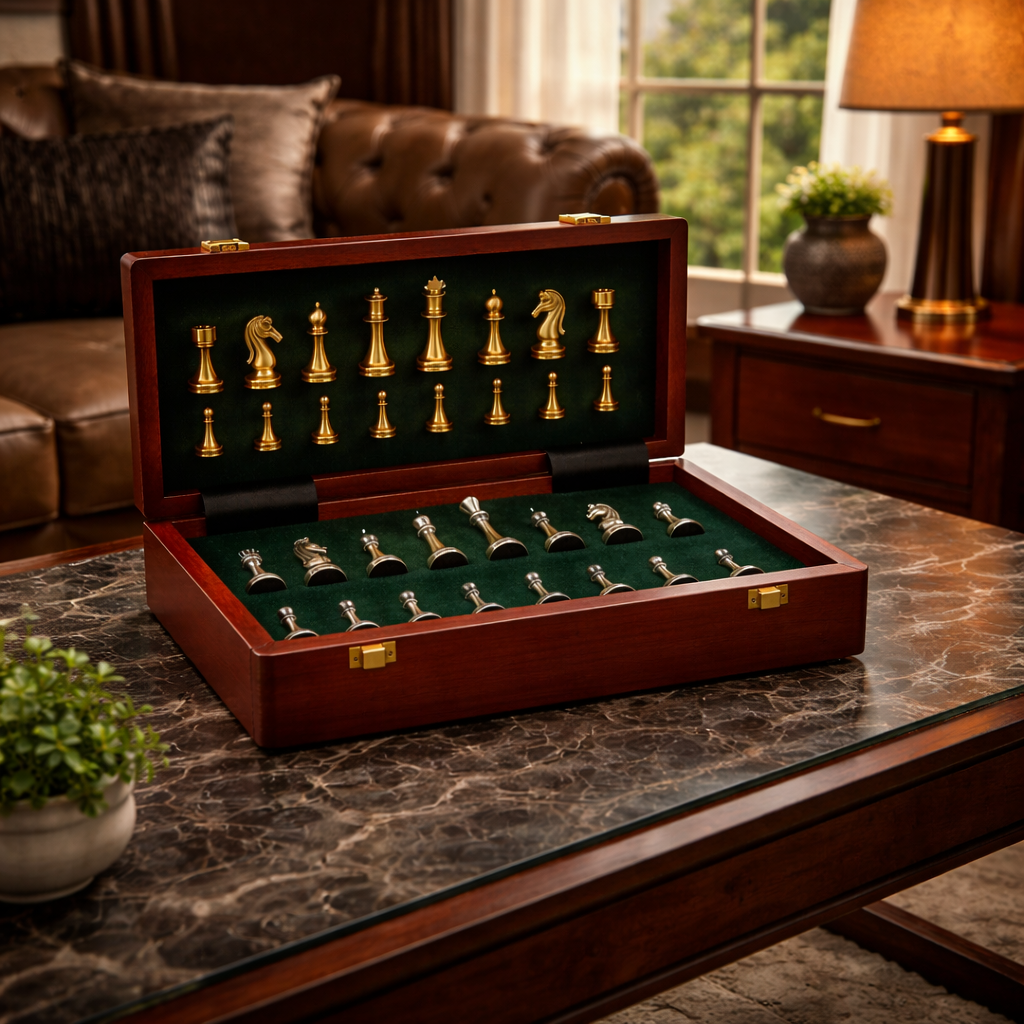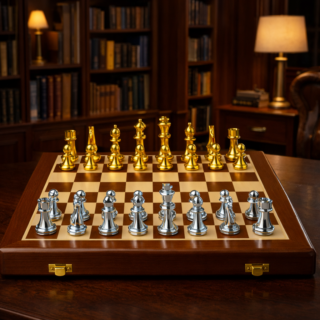 - Pièces incluses : Roi, Dame, 2 Fous, 2 Cavaliers, 2 Tours, 8 Pions par camp